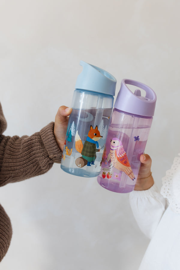 Sparkling transparent drinking bottle with 2 compartments, 2 drinks in 1 bottle!
