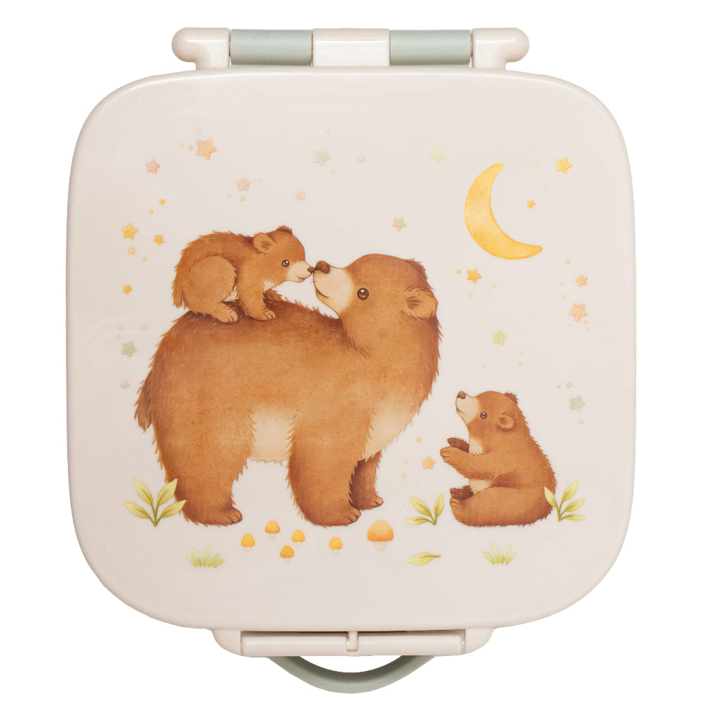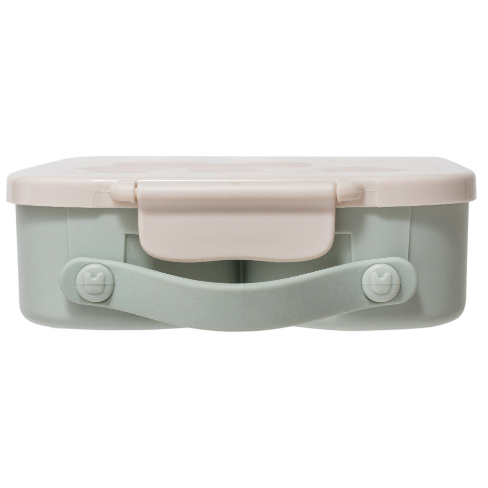 This leak free bento lunch box has 3 departments, the lunch box can also be used without the compartment divider. Easy click and close lid + silicone handle.