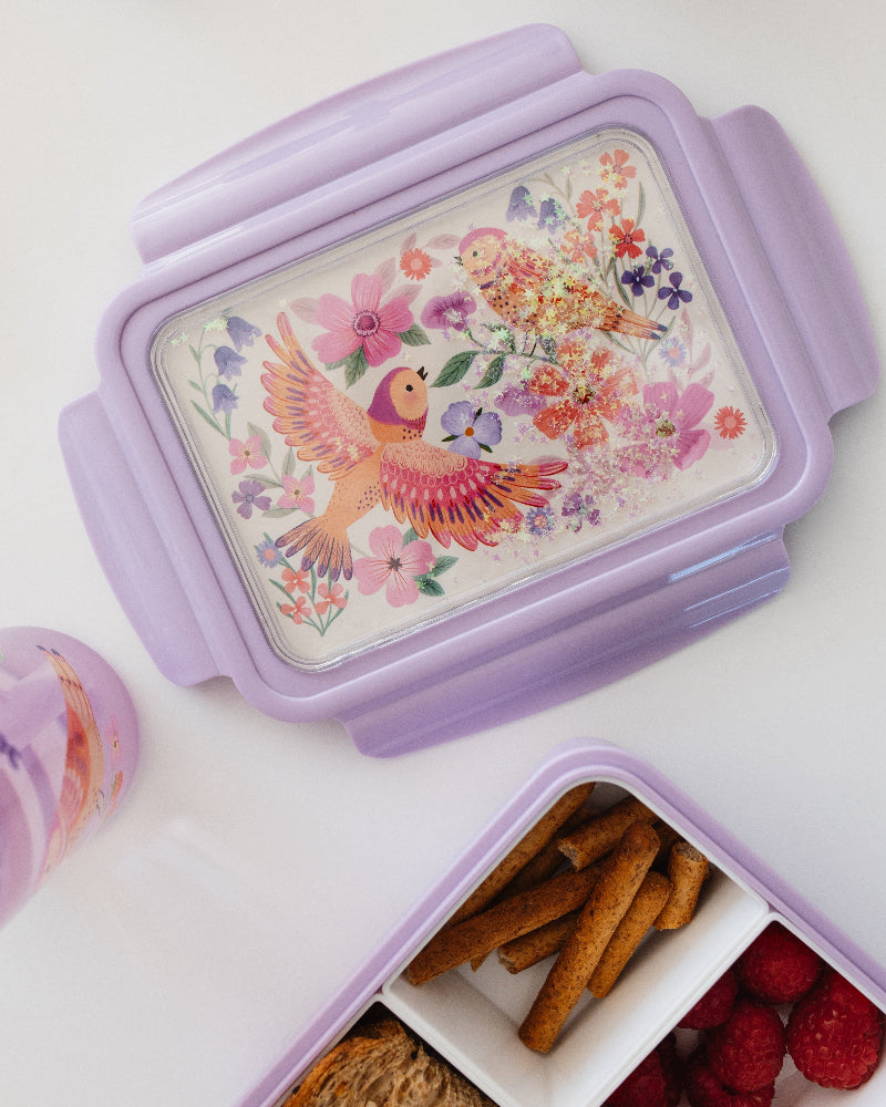 This bento lunchbox has 3 removable departments, the lunchbox can also be used without the compartments a large lunchbox. Easy click and close lid with a removable clear lid with stars.